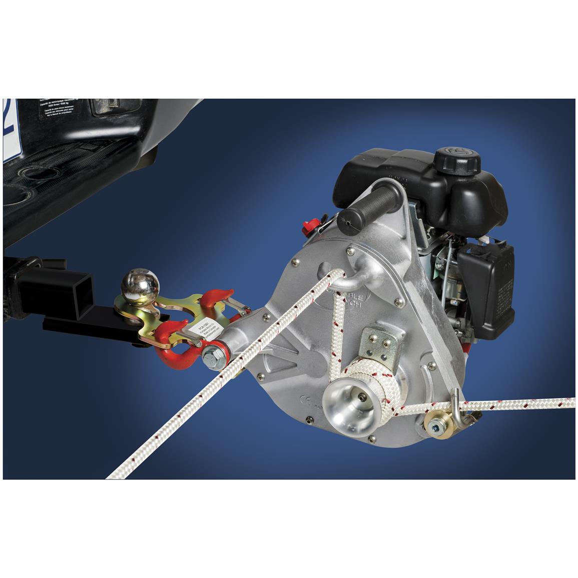 Pcw 5000 er lett, drives av 4-takts Honda GXH-50 cc og har en trekkapasitet på 1000 kg (2200 lb). Hvis du noensinne trenger å få ned trær som har hektet seg fast, trekke opp stubber, få løs et kjøretøy eller hale en elg ut av skogen eller vannet, er PCW5000 vinsjen for deg. Denne portable vinsjen veier bare 16 kg (35 lb) og er lett å bære, og kan ankres til nesten hva som helst med slyngen på 2 m (6?) som følger med, eller med annet tilbehør for forankring.